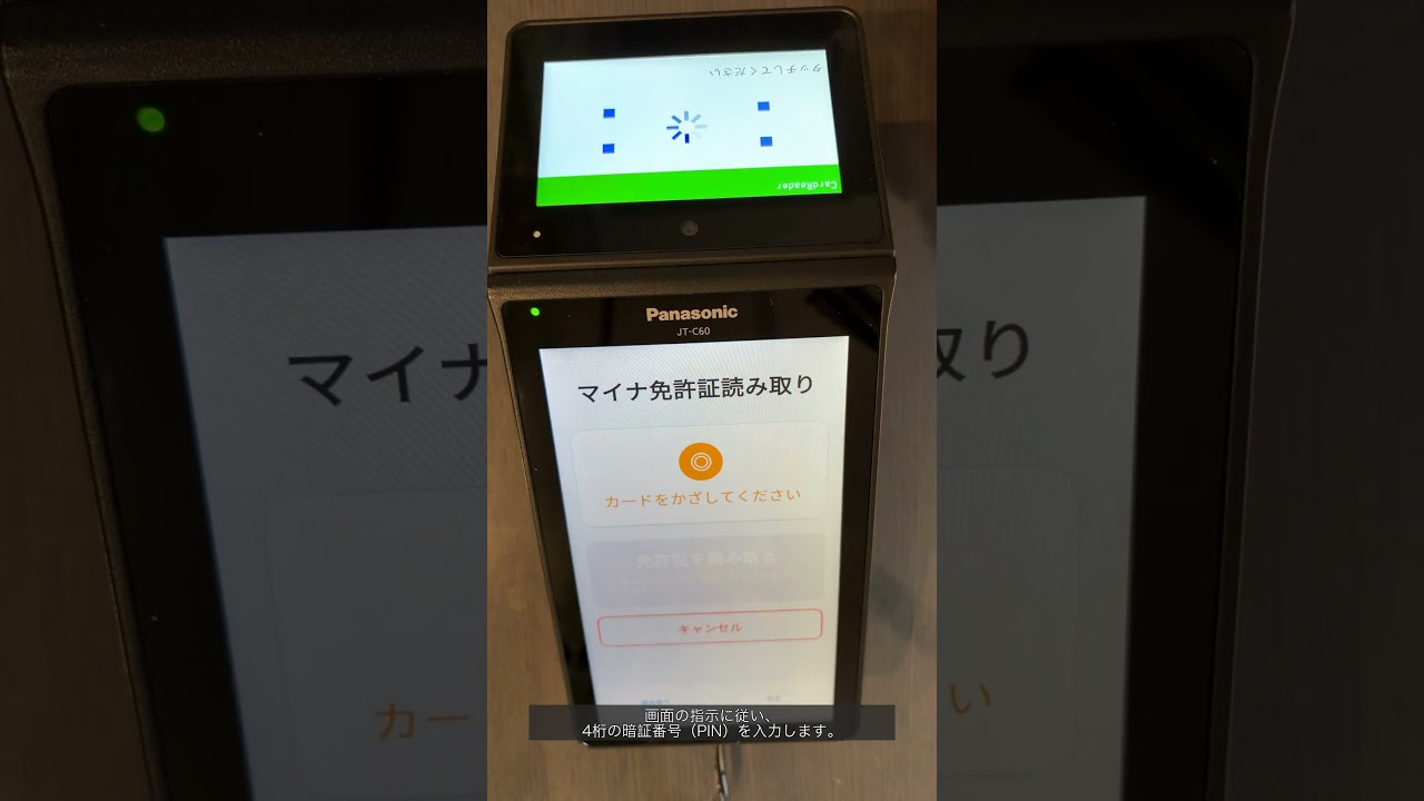レンタカーや建機レンタルの有人カウンターでの本人確認。お客様が端末にマイナ免許証をかざすだけで、スタッフの目視確認・手入力作業を代替し、スムーズな貸渡手続きを実現。